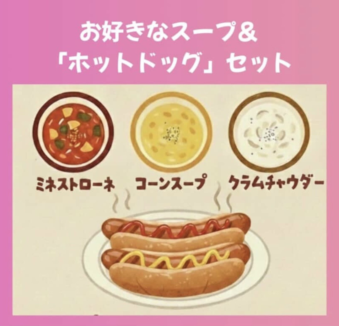 野菜の旨味たっぷりの食べるスープは3種類!タコスやホットドッグと一緒に楽しめるセットも大人気、応援の方も是非お立ち寄りください。